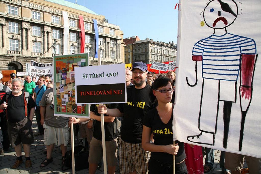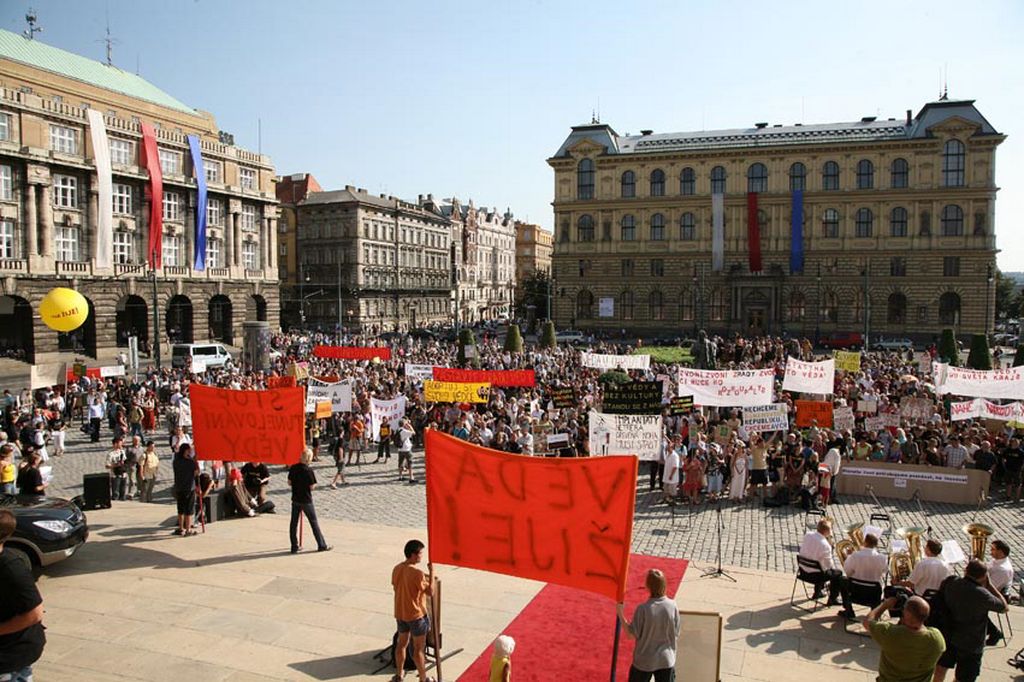 Praha, 25. 8. 2009: Demonstrace "Stop tunelování české vědy a kultury" VB